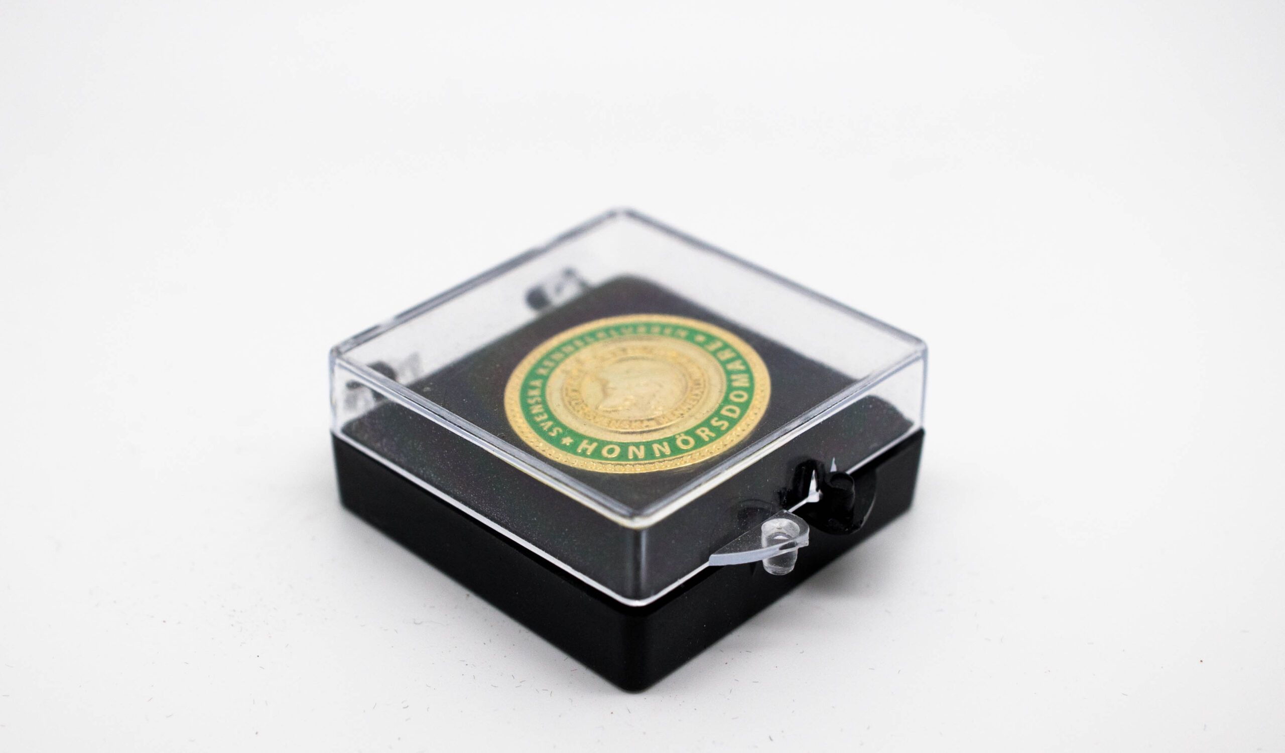 Färg: svartbotten och sammetsinlägg med transparent locke